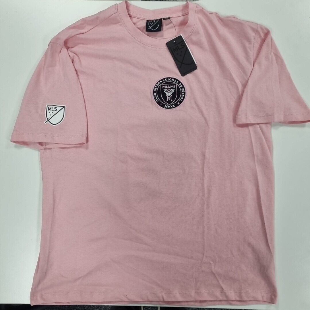 Pink Embroidered Inter Miami Football Club Logo MLS Messi 10 Print Shirt Size L