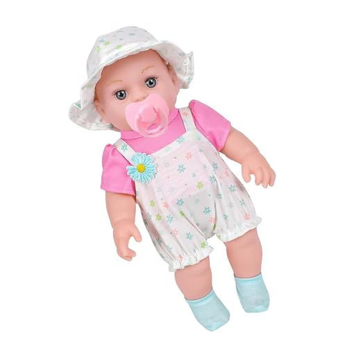 REITINGE Realistic Vinyls Girl Baby Dolls 12inch with Bonnet Overalls for Kids Play Realistic Baby New Borns Asleep Toy Soft Interactive Play Dolls