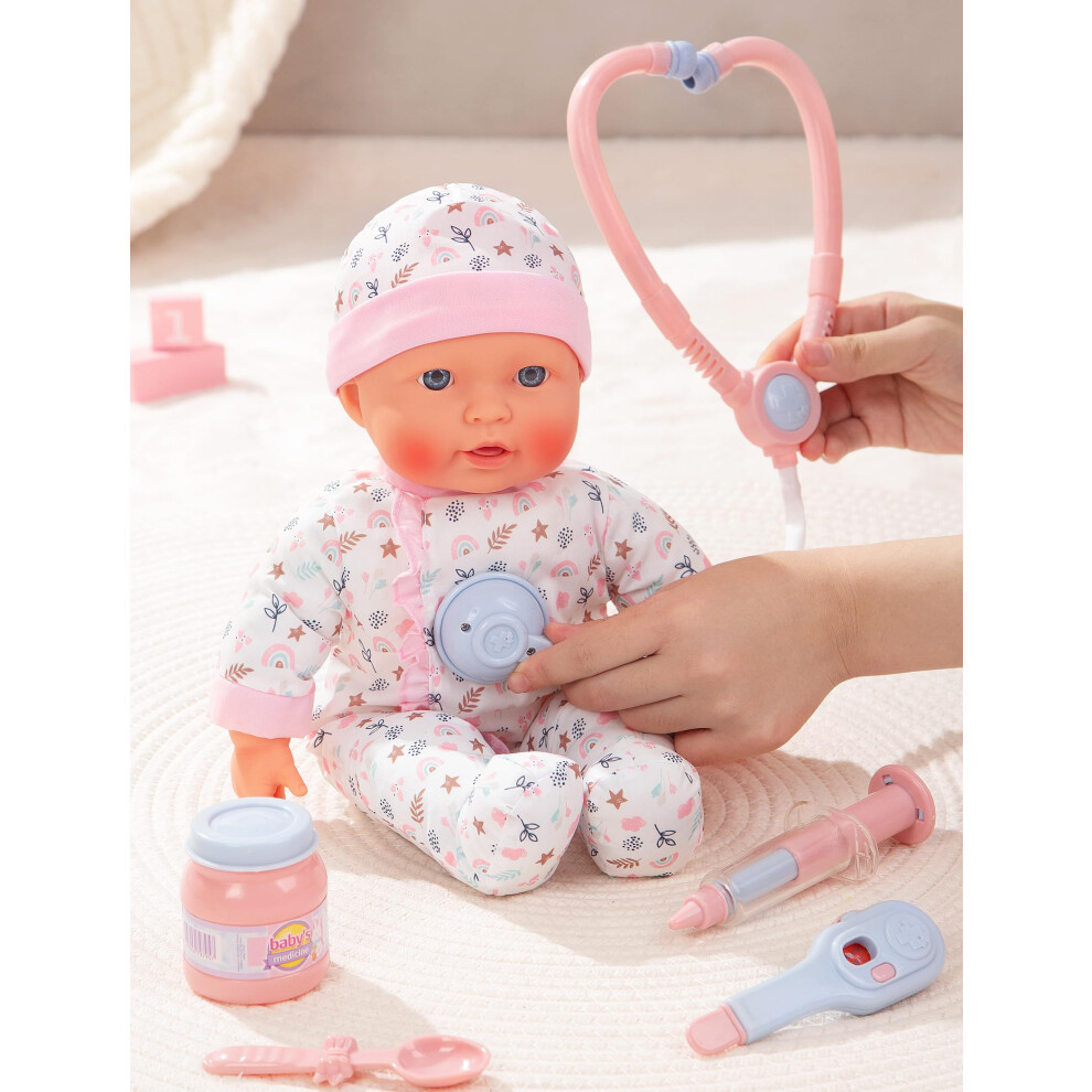 HERSITY Baby Doll Doctor Set Toy for Girls, Talking Baby Dolls Open and Closing Eyes, 13” Interactive Baby Doll Accessories Pretend Play Toy Gift for Kids Toddler 2 3+ 4 5 Years Old, Pink