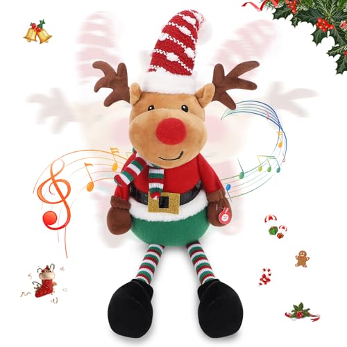 Singing Dancing Repeating Christmas Elk Christmas Plush Toy with Music, Electric Christmas Ornaments Stuffed Toy Interactive Animated Elk Dolls Toy Xmas Decoration Wiggle Musical Doll Xmas Kids Gifts