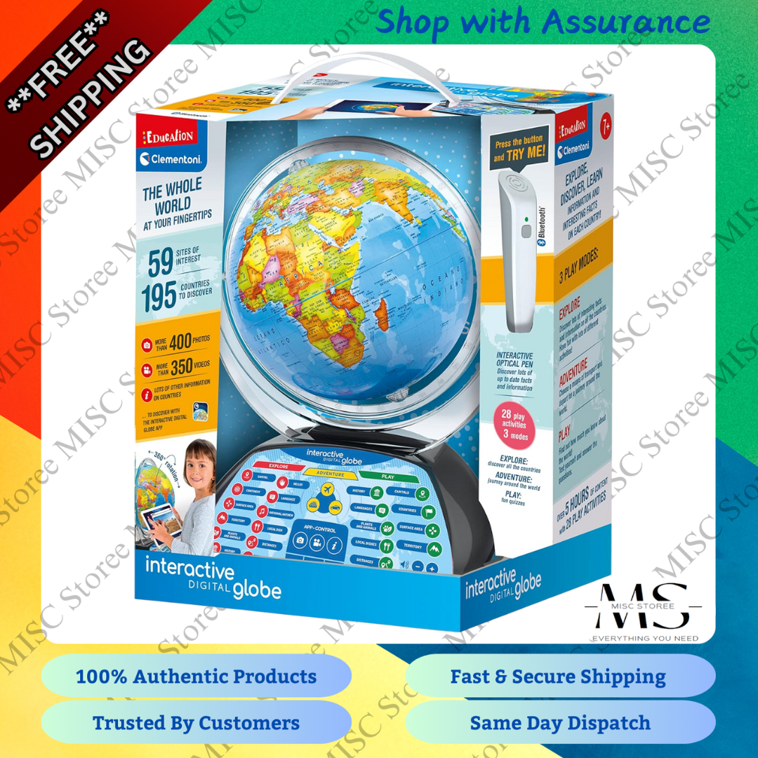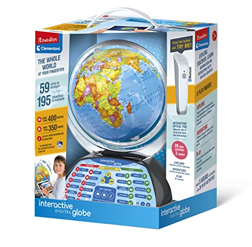 Clementoni- Digital Interactive Globe for Kids: Light Up World Globe with Talking Pen & App (7+ Years)