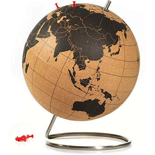 Suck UK Cork Globe | World Map Globe | Interactive Map | Push Pins Included | Desk Accessories | Office Decor | Educational Geography Gifts | Stainless Steel Stand | Desktop Display | Large - 30cm