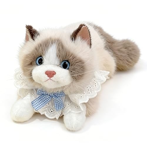 JORCEDI Ragdoll cat Plush Toy, Realistic Stuffed Cat Animal with Interactive Meowing Sound, Huggable Kitten Plushie Toy, Cat Teddy Present for Boys Girls Girlfriend Birthday Deco (White,45cm)
