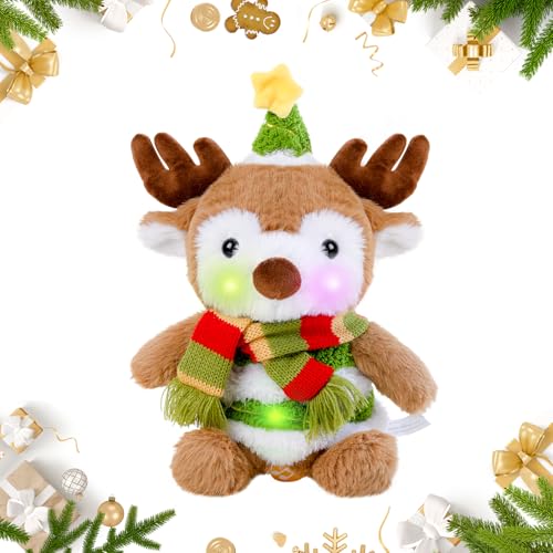 Edencomer Reindeer Plush Toy, Singing Dancing Glowing Repeating Toy, Musical Interactive Plush Toy Repeating What You Say, Cute Reindeer Teddy for Kids Girls Boys