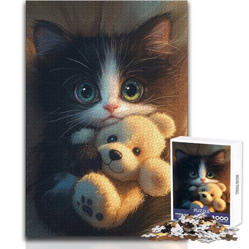 Cute Kitten with Teddy Bear 1000 Pieces Puzzles for Adults Interactive Educational Skill Game Great Meaningful Gift Idea Size 38x52cm