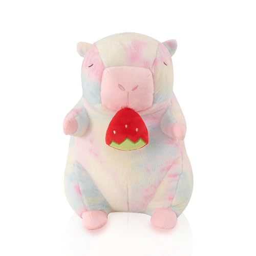 Interactive Capybara Plush Toy, Capybara Gifts For Girls And Boys, 25cm Cute Rainbow Teddy, Birthdays Gifts For Girlfriend, Capybara Soft toys For Kids, With Pullable Strawberry Mouth