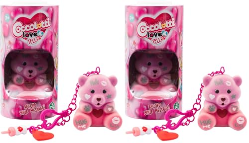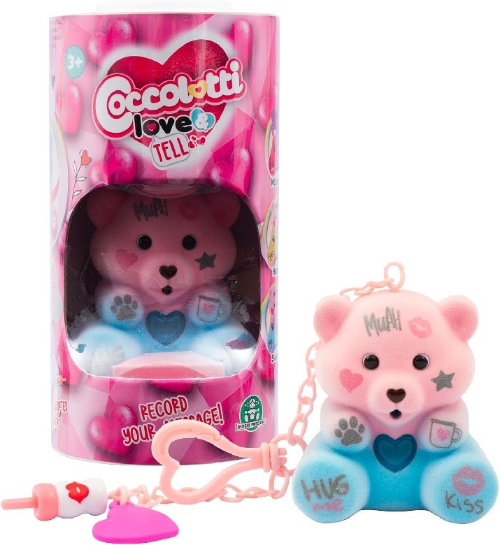 Coccolotti Love and Tell, 1 of 6 Interactive Teddy Bears with Recording Function and Nylon Charm Keychain, Records and Repeats Messages, Eco-Friendly Playhouse Packaging, Bear Chosen at Random