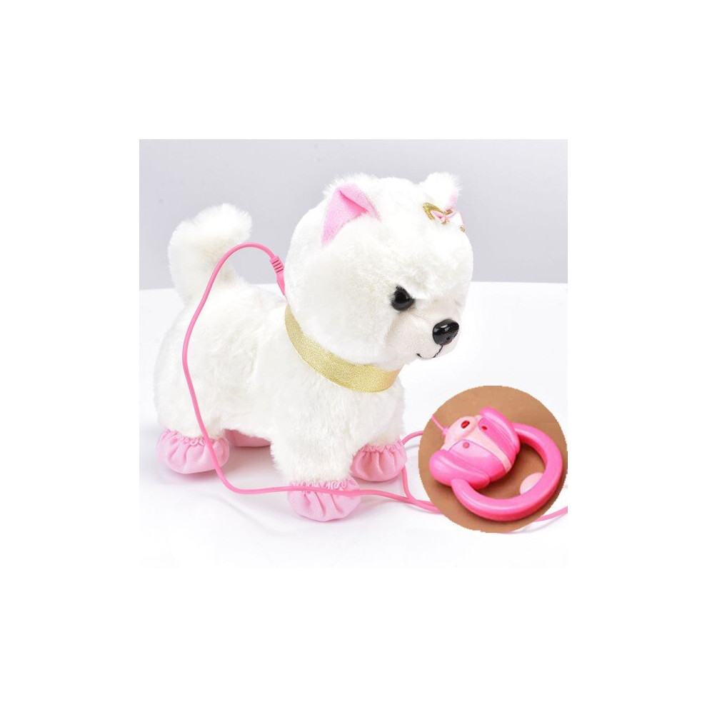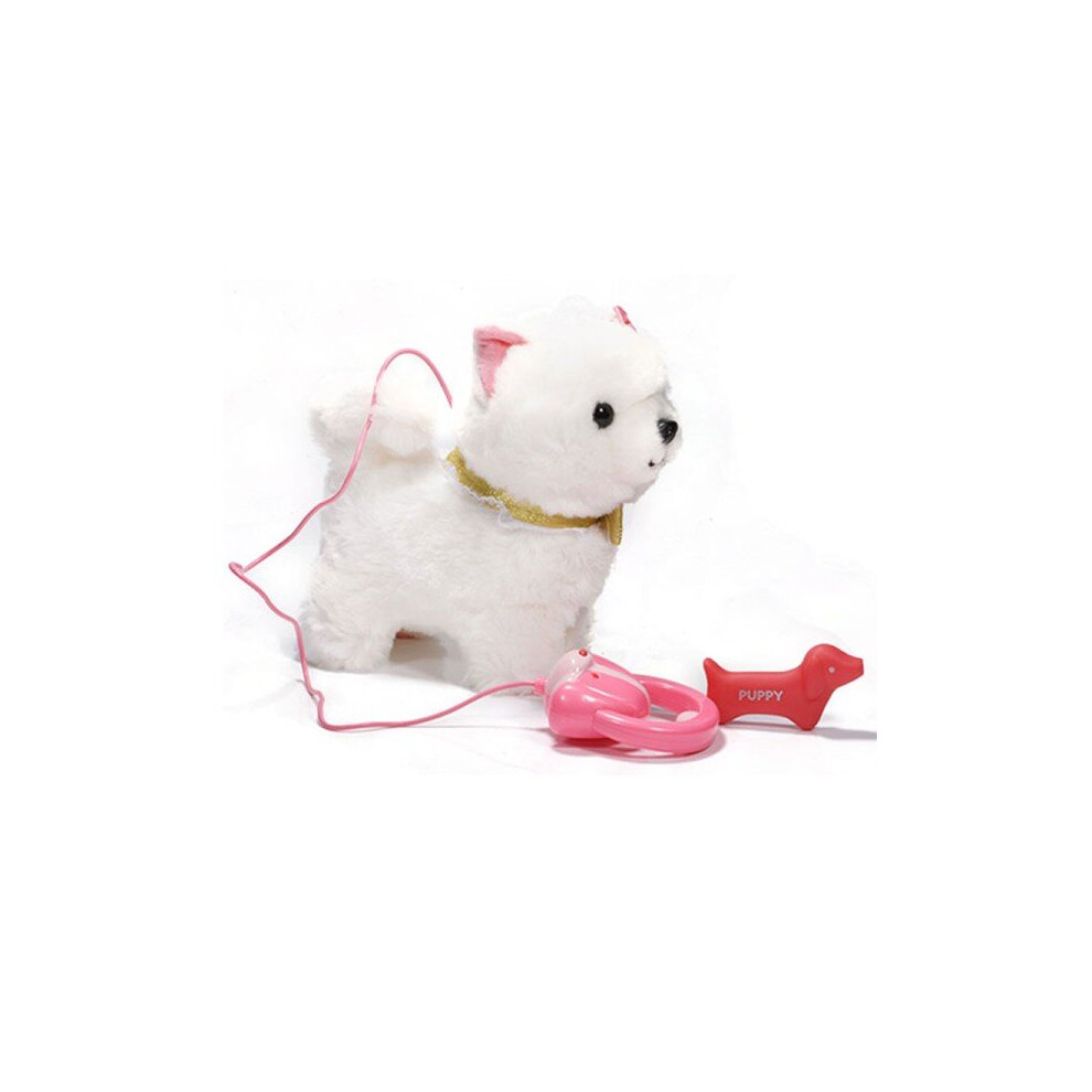 (White Dog) Robot Dog Sound Control Interactive Dog Electronic Toys Plush Puppy Pet Walk Bark Leash Teddy Toys