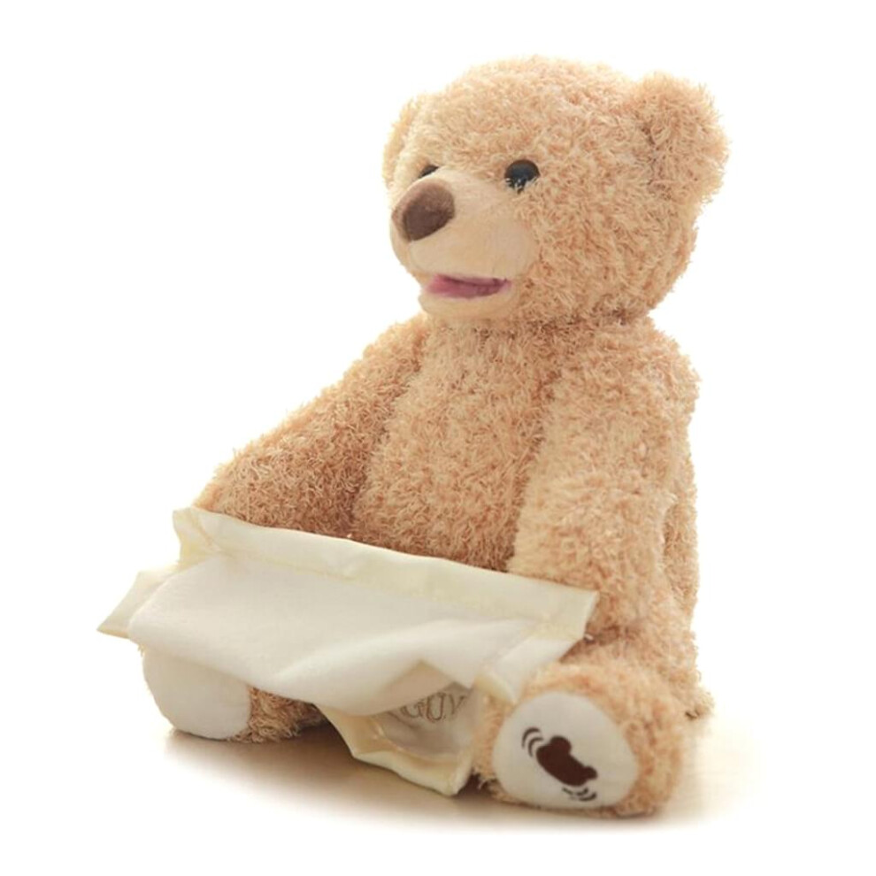 Hopearl Peek A Boo Bear with Security Blanket Interactive Repeats What You Say Plush Teddy Bear Toy Musical Singing Talking Stuffed Animal Adorable Electric Animate Birthday Festival, Beige, 11''