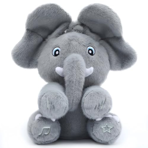 Tunnyfiy Peek A Boo Elephant Baby Plush Toys: Peekaboo Elephant Newborn Interactive Toy Stuffed Animal Sing 4 Songs Teddy for Boys Girls Gift