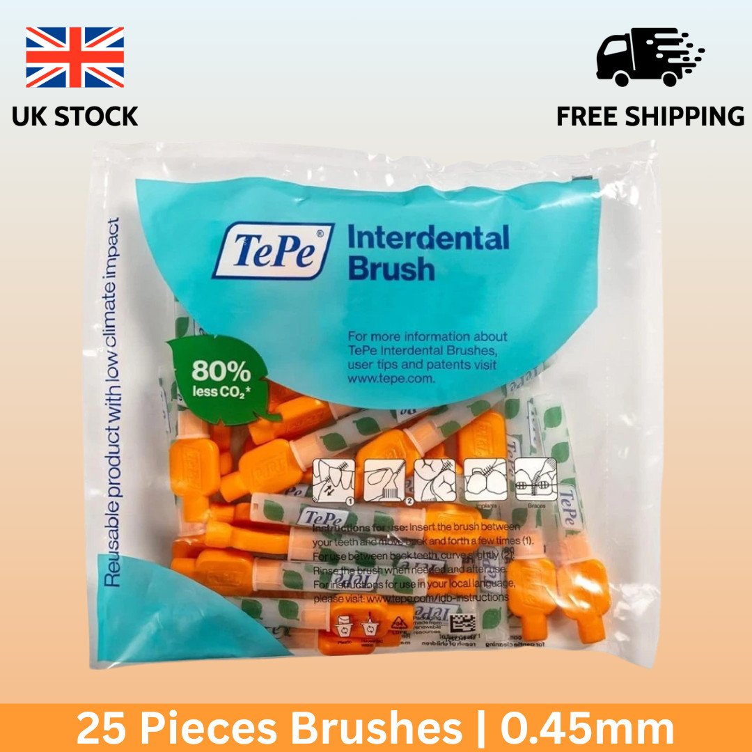 TEPE INTERDENTAL BRUSHES 0.45MM ORANGE PACK OF 25 | DENTAL CLEANING UK STOCK