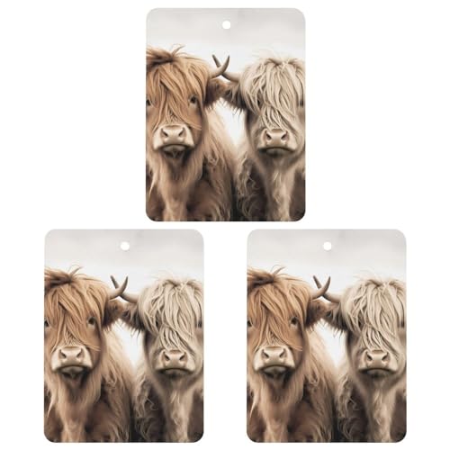Two Highland Cows 3Pcs Car Air Fresheners Hanging Long Lasting Scents Auto Fresheners Aromatherapy Tablets Rearview Mirror Interior Accessories