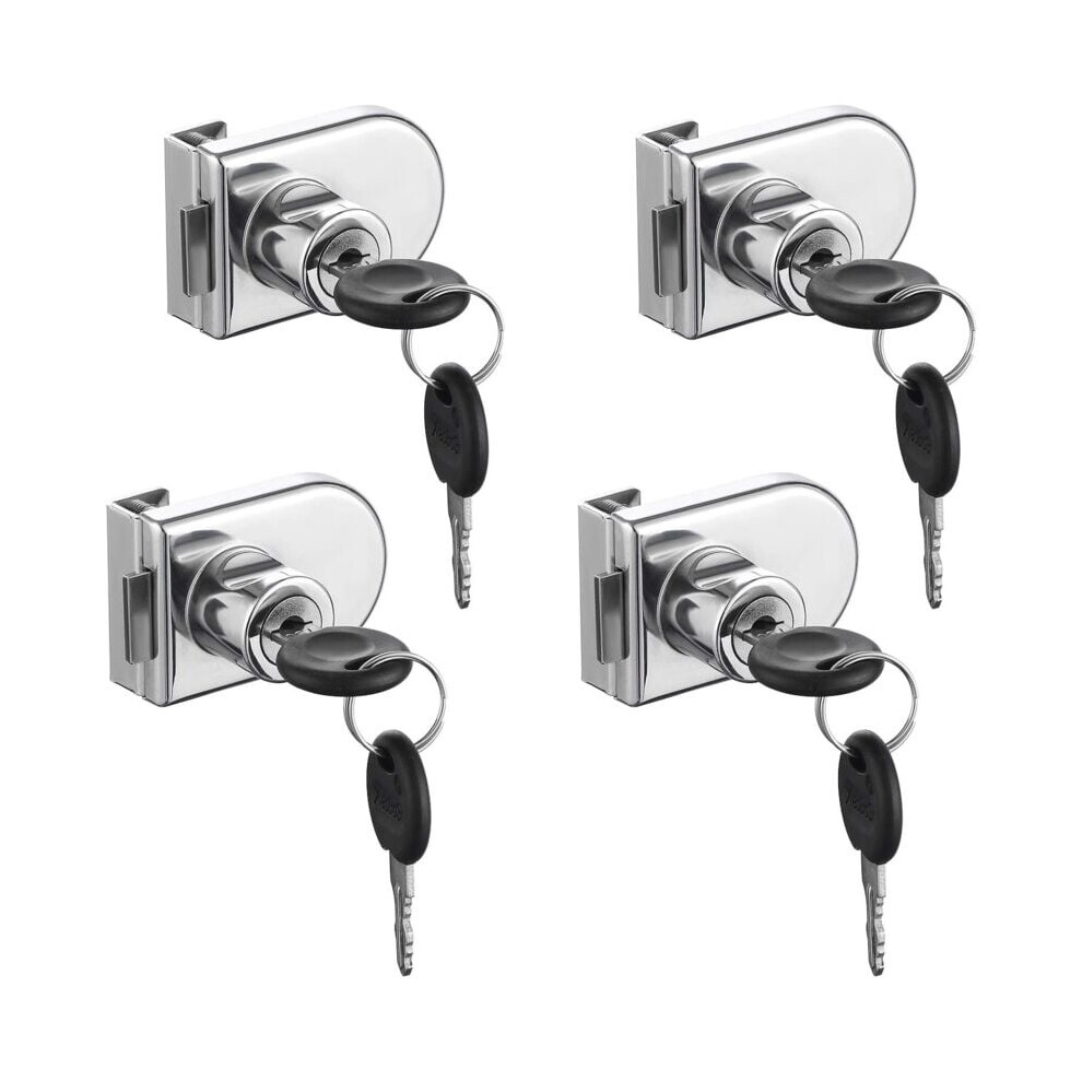 4 Pack Double Opening Glass Door Display Cabinet Safety Lock, Suitable for 0.2-0.3 Inch Glass Door, Separate Key No Drilling, Zinc Alloy (with 8 Keys)