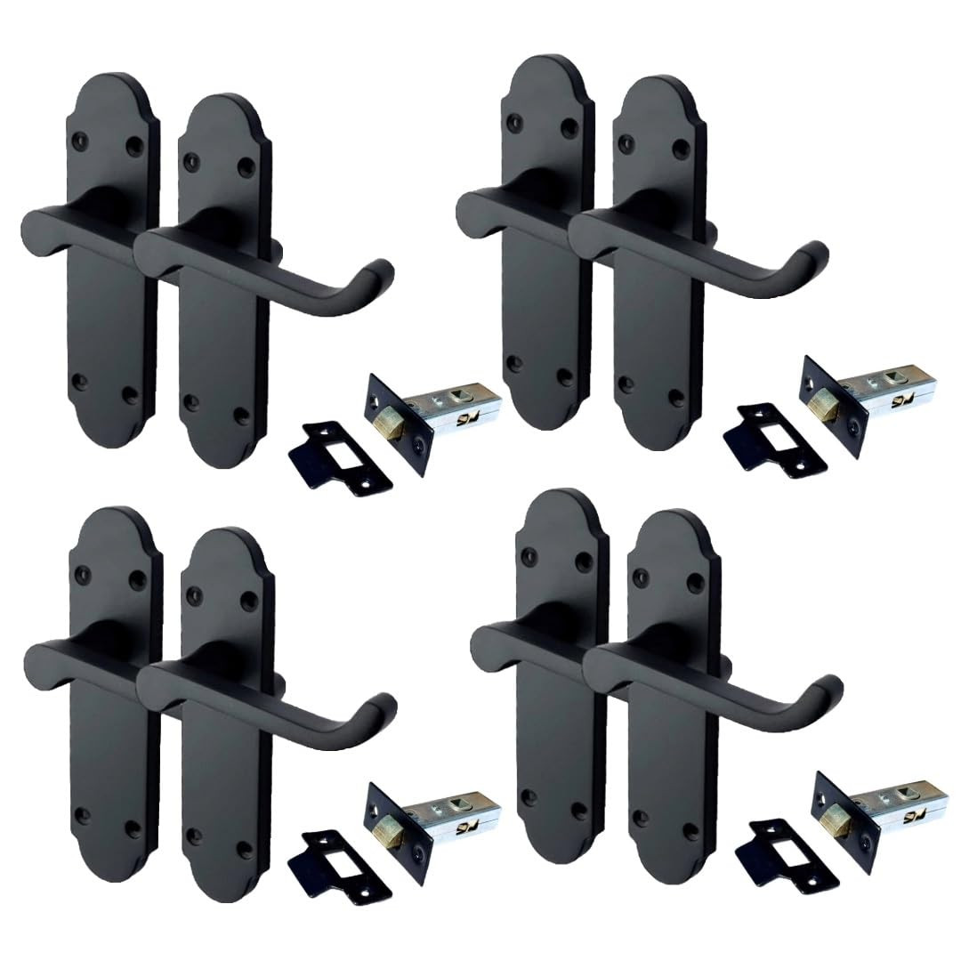 Epsom Matt Black Door Handle Set, Internal Handles with Bathroom Sash Lock 170mm