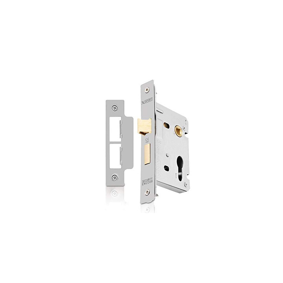 XFORT 3 Lever Polished Chrome Mortice Sashlock 65mm, Door Lock with Key for Internal Doors, CE Approved and Fire Rated Protection