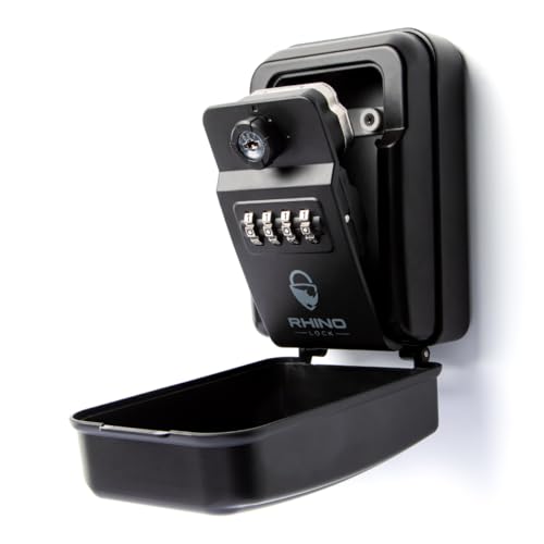 Rhino Lock Secure Key Combination Safe - Outdoor Heavy Duty Wall Mounted Security Lock Box - Large Internal Storage for House or Office Keys with...