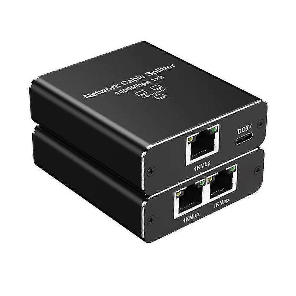 Ethernet Splitter 1 to 2, Gigabit Network Switch Ethernet Switch 2 Port, 1000Mbps RJ45 LAN Internet Splitter with USB-C Power Cable for Computer, Hub, Switch, Router, ADSL, Set-Top Box, Digital TV,Etc