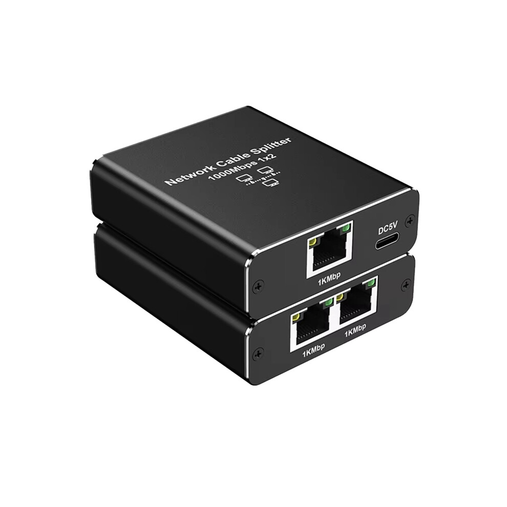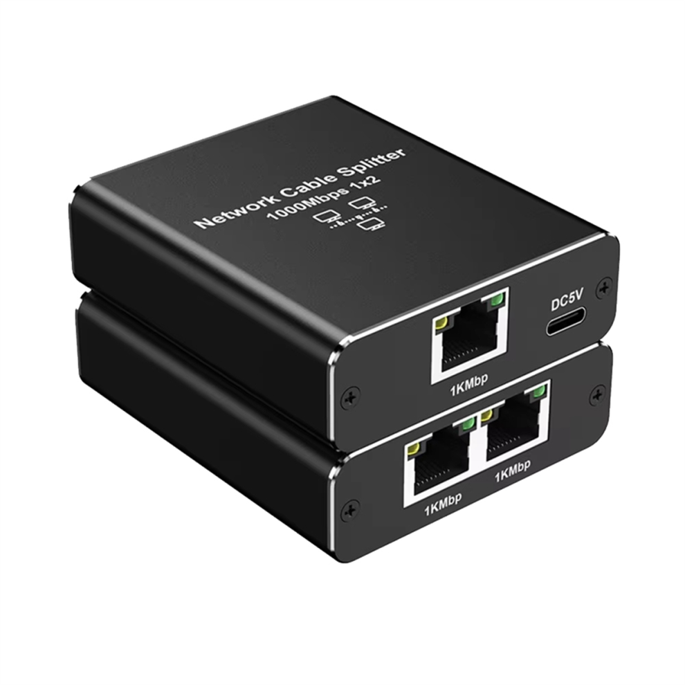 Ethernet Splitter RJ45 Network Port 1 to 2, Gigabit Network Switch 1000Mbps, Aluminum Alloy Ethernet Cable Splitter for Router Laptop TV Box, High Speed Internet Sharing with USB C