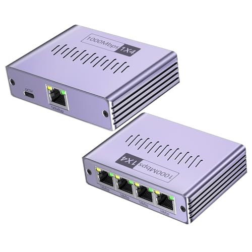 Ethernet Splitter 1 to 4,Gigabit Ethernet Switch, 1000Mbps RJ45 LAN Internet Splitter, 4 Port Gigabit Ethernet Switch for Computer, Laptop, Hub, Switch, Router, Set-Top Box