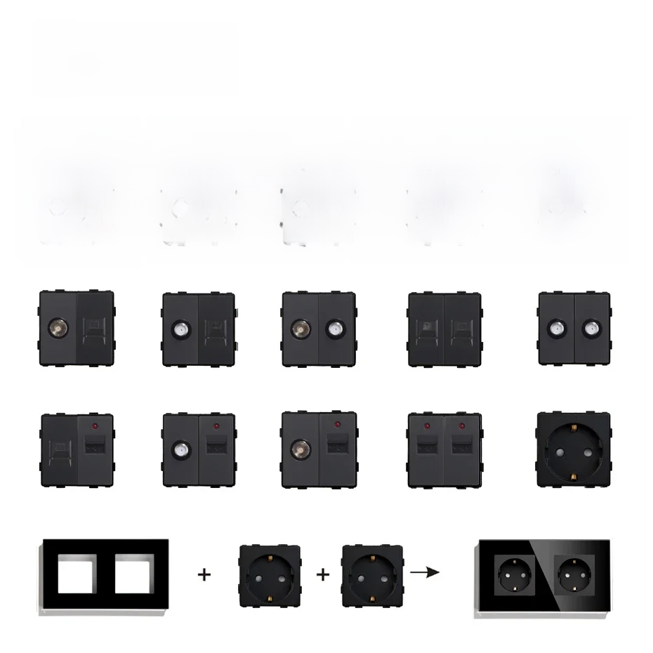 Bseed EU Standard USB Type-C Socket Parts Button Switch Internet TV HDMI Satellite With Glass Frame Black DIY Function Parts