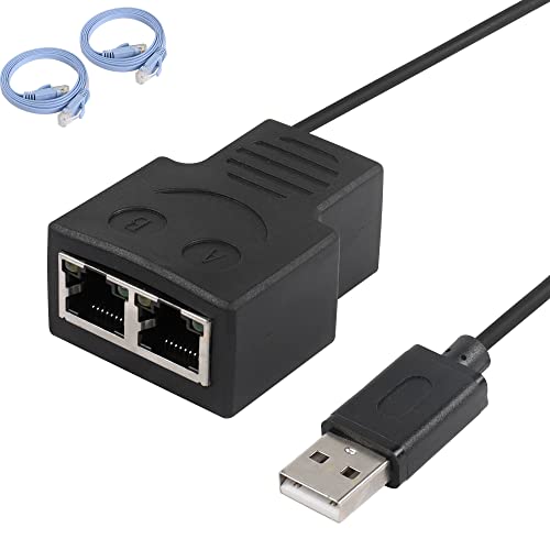 SinLoon USB RJ45 Splitter Adapter Ethernet Cable, 1 Female to 2 Female Network Adapter with USB Power Port, Two Devices Simultaneously Share Internet, for Router TV Box Computer