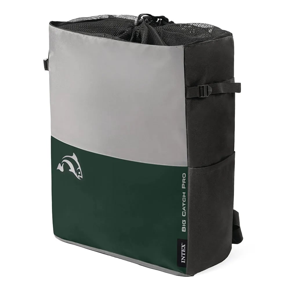 INTEX Big Catch Pro Inflatable Fishing Float Tube, Includes 54in Boat Oars, High-Output Pump, Detachable Fishing Rod Holders, Mesh Fish Ruler, Heavy Duty Backpack, Storage Bag, 308lb Weight Capacity