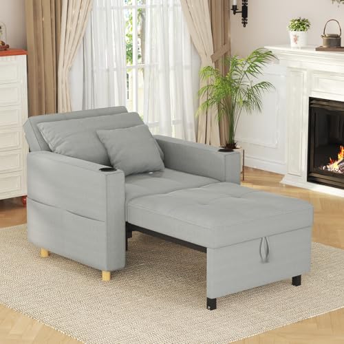 Home Detail Sofa Bed Single Chair Velvet Fabric Armchair Sleeper Chair Chaise Pull Out (Grey Velvet)