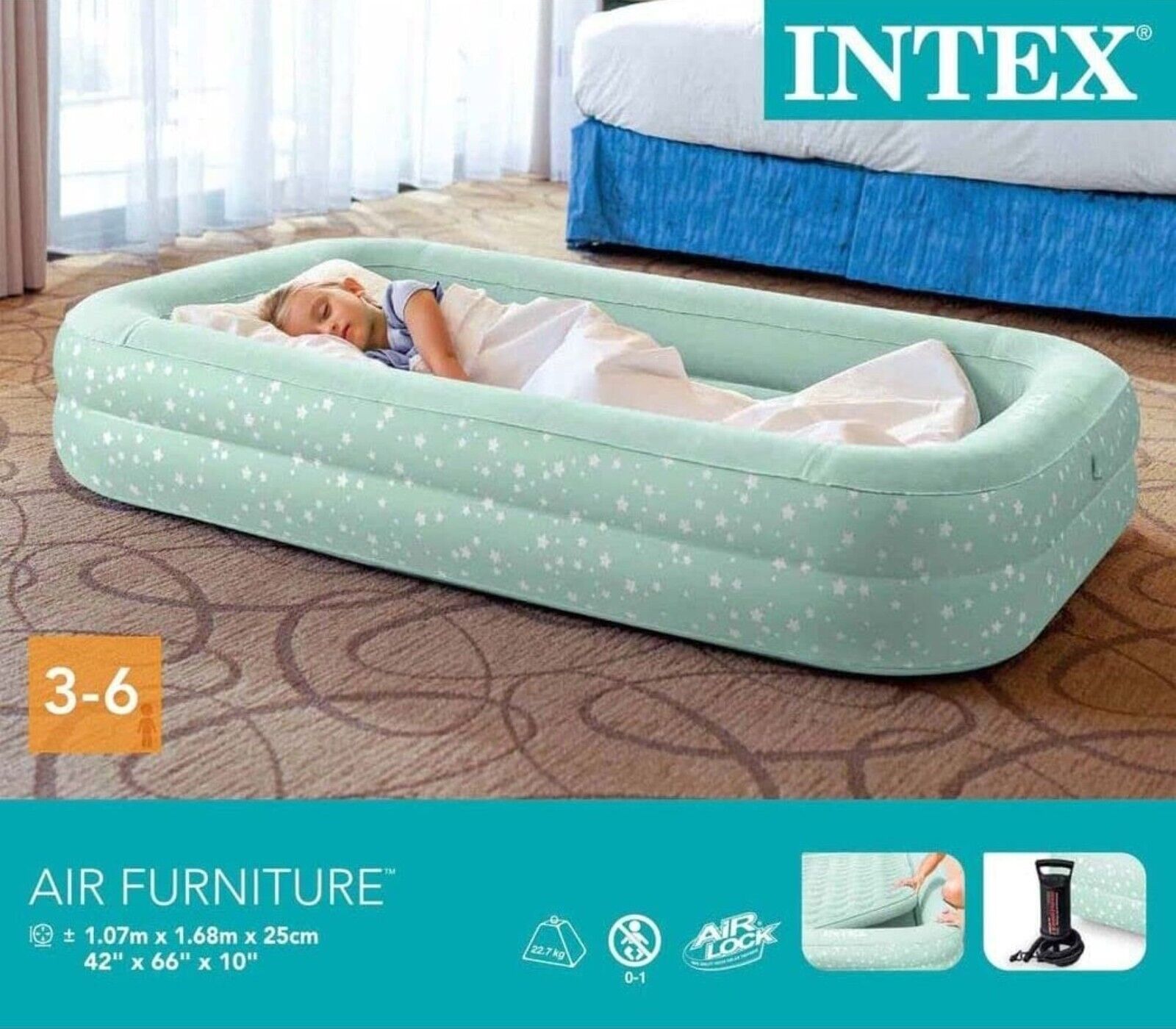 Explore our collection of Intex travel beds. These versatile air mattresses are perfect for camping trips, sleepovers, or as an extra bed for guests. The Intex Kidz Travel Bed Set, measuring 107x168x25 cm, is a popular choice. Available in white, gray, and green, this single air mattress is comfortable and easy to set up. Whether you're looking for a temporary sleeping solution or a portable bed for your little one, our selection of Intex travel beds has you covered. Compare prices and find the perfect option for your needs.