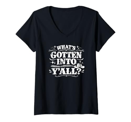 Women's What’s Gotten Into Y’All Funny Southern Saying Western Style V-Neck T-Shirt