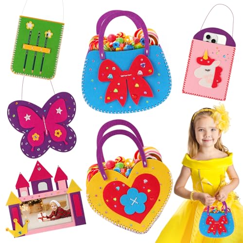 Galt First Sewing Kit - 5 Childrens Sewing Kits, Craft Kit for Kids - Introduction to Sewing, Colourful Learn to Sew Set - Step by Step Guide - Make a Bag, Frame, Purse and More - Ages 5 Years Plus
