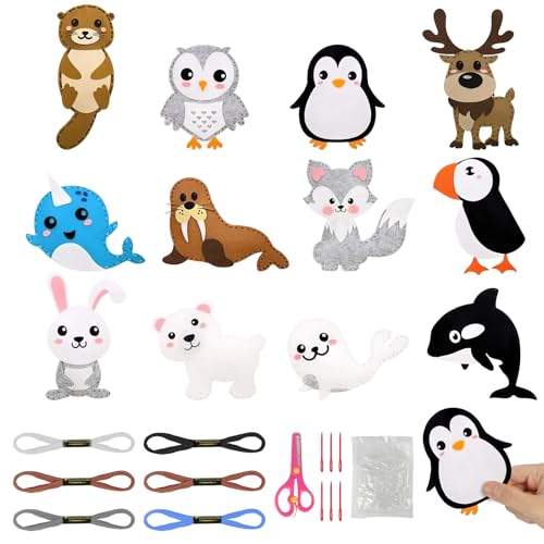 Vicloon Sewing Kit for Kids, 12-Piece Cute Animal Sewing Craft Kits, Fun Stuffed Animal DIY Kits for Kid Learn to Sew Arts and Crafts Kit, Introduction to Sewing Set for Kids Age 5-12