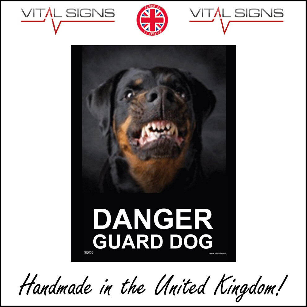(150 x 200mm - 6 x 8, 1mm Pvc Foamex) SE035 Danger Guard Dog SIGN watch defend property attack growl intruder alarm