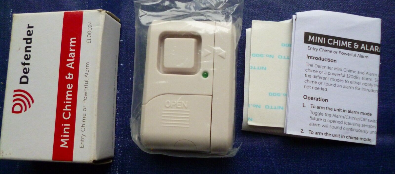 Defender Mini Door Chime & Intruder Deterrent Alarm, 120dBs Siren, EL00024 - New