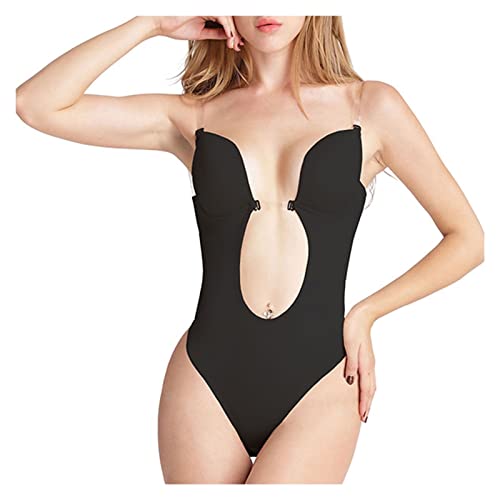 HLTYGWX Seamless U Plunge Backless Thong Bodysuit Shapewear Lingerie for Women Invisible Bra Under Dress Sculpting Body