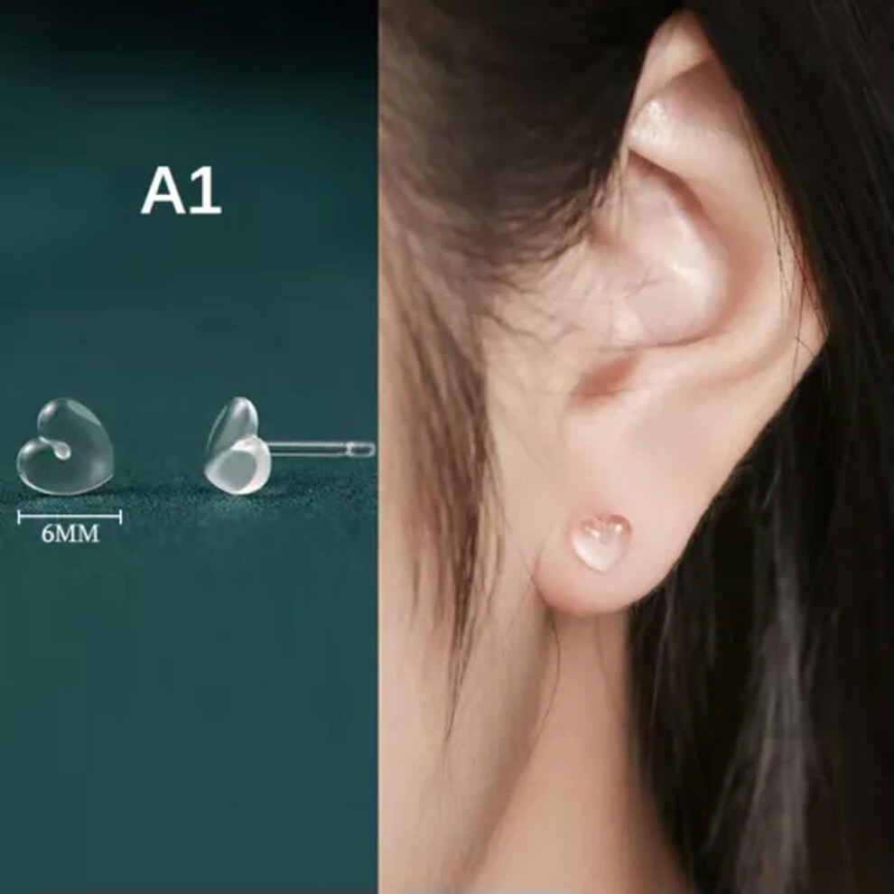 Silicone Stud Earrings For A Secure Fit, Clear Plastic Posts With Invisible Earring Retainers, Lightweight And Durable, Suitable For Sensitive Ears, 1
