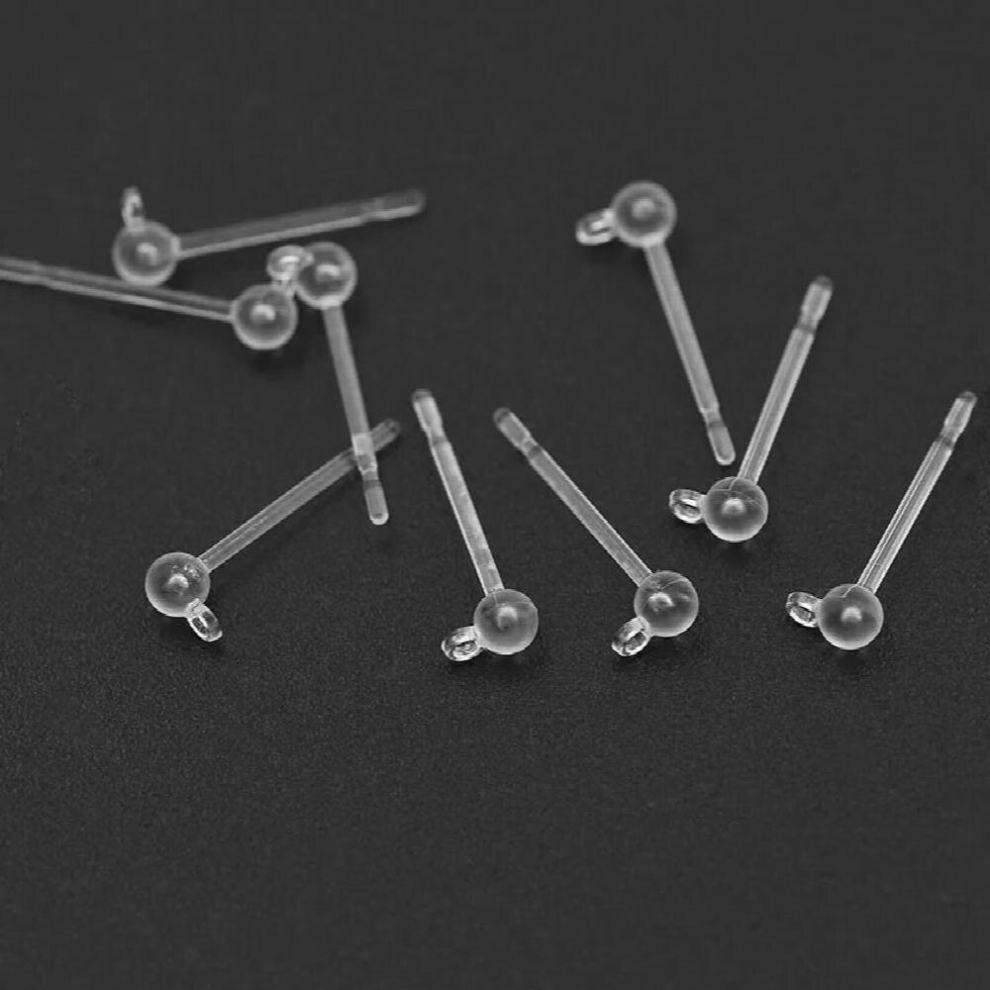 Invisible Stud Earrings 3mm Ball With Loop Hanger Findings DIY Plastic Resin Clear Pin Stud Earrings Component