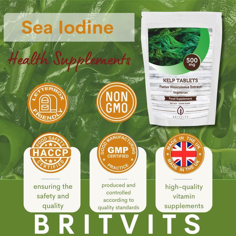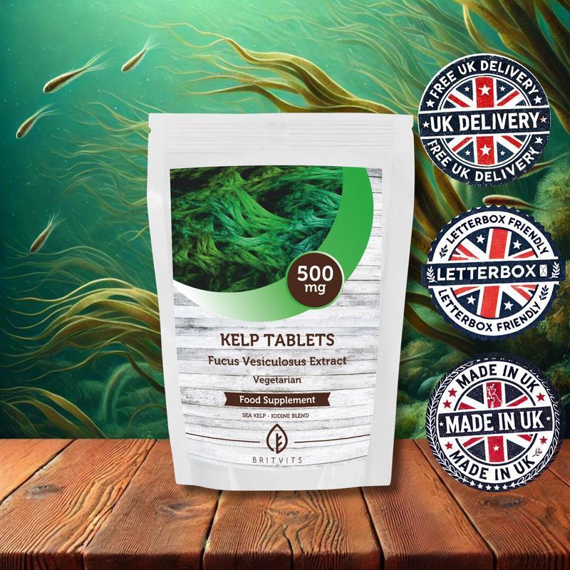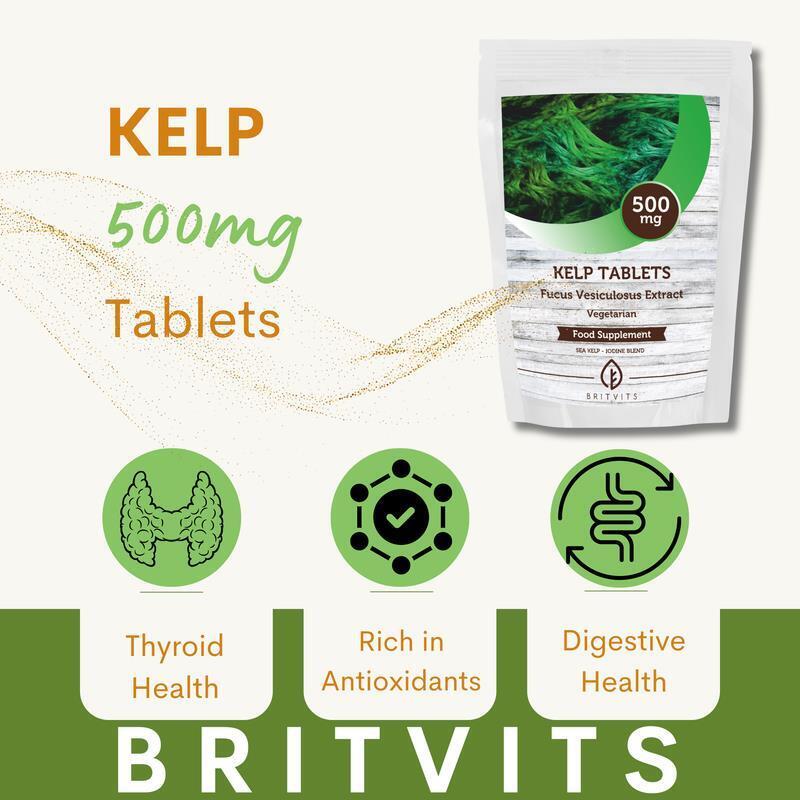 Kelp 500mg Tablets Natural Iodine Thyroid Metabolism 120 Tablets BRITVITS UK