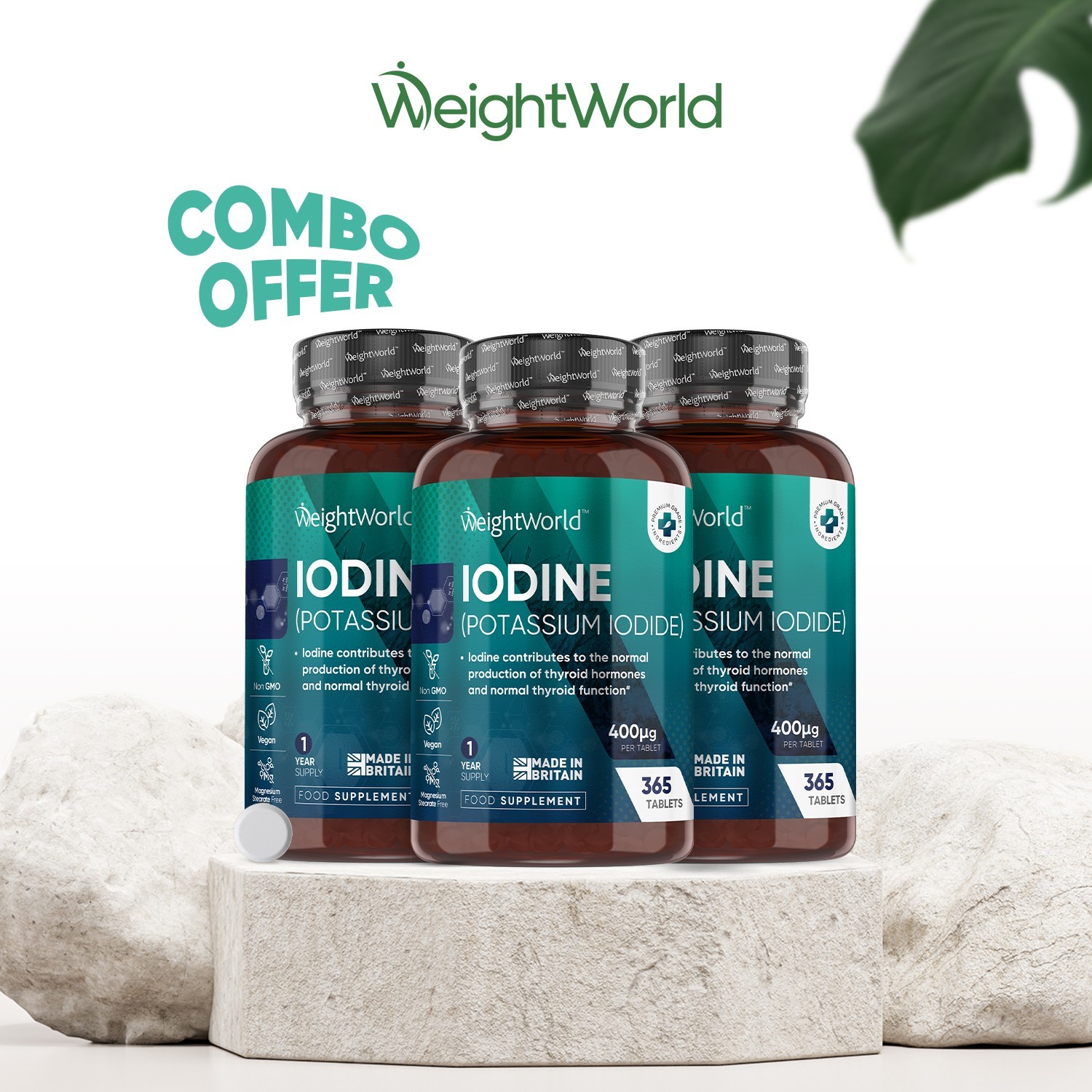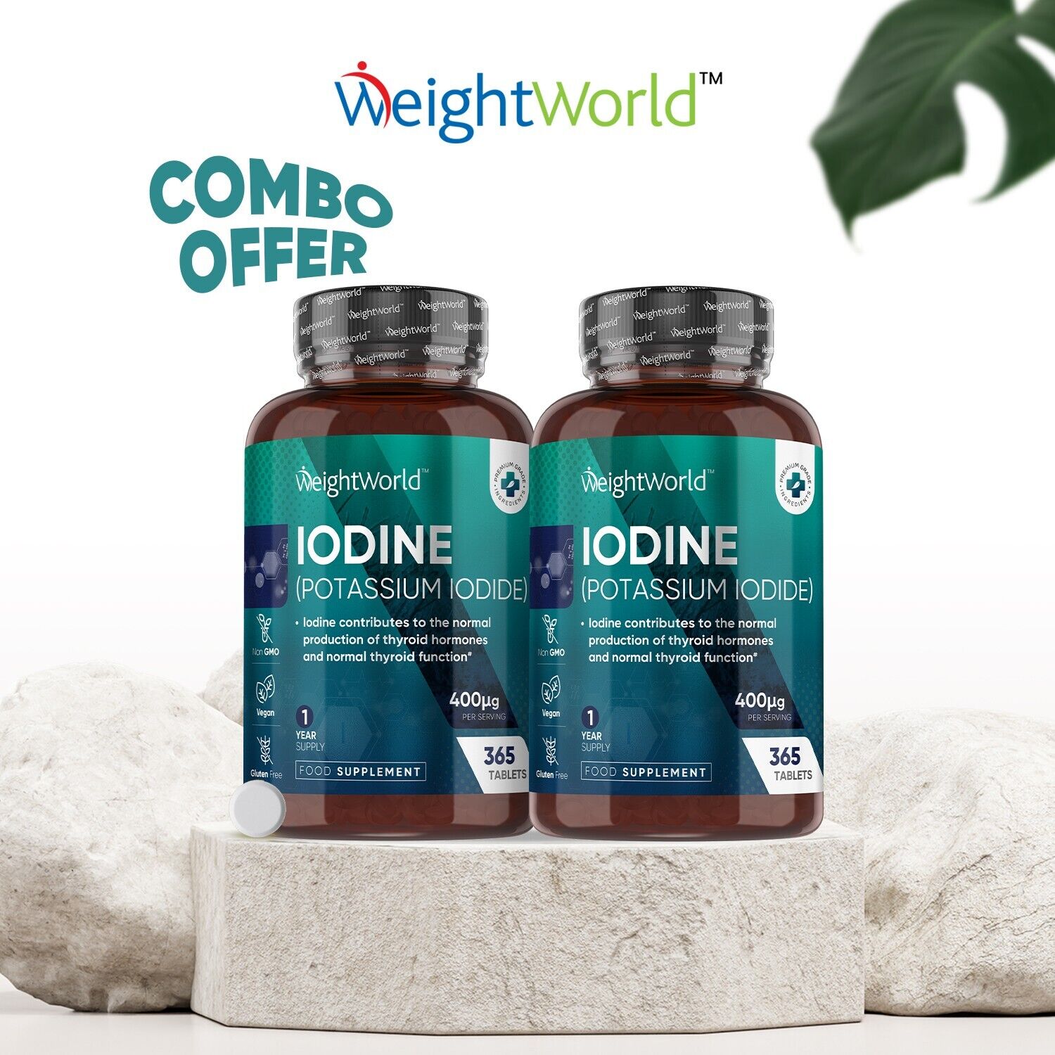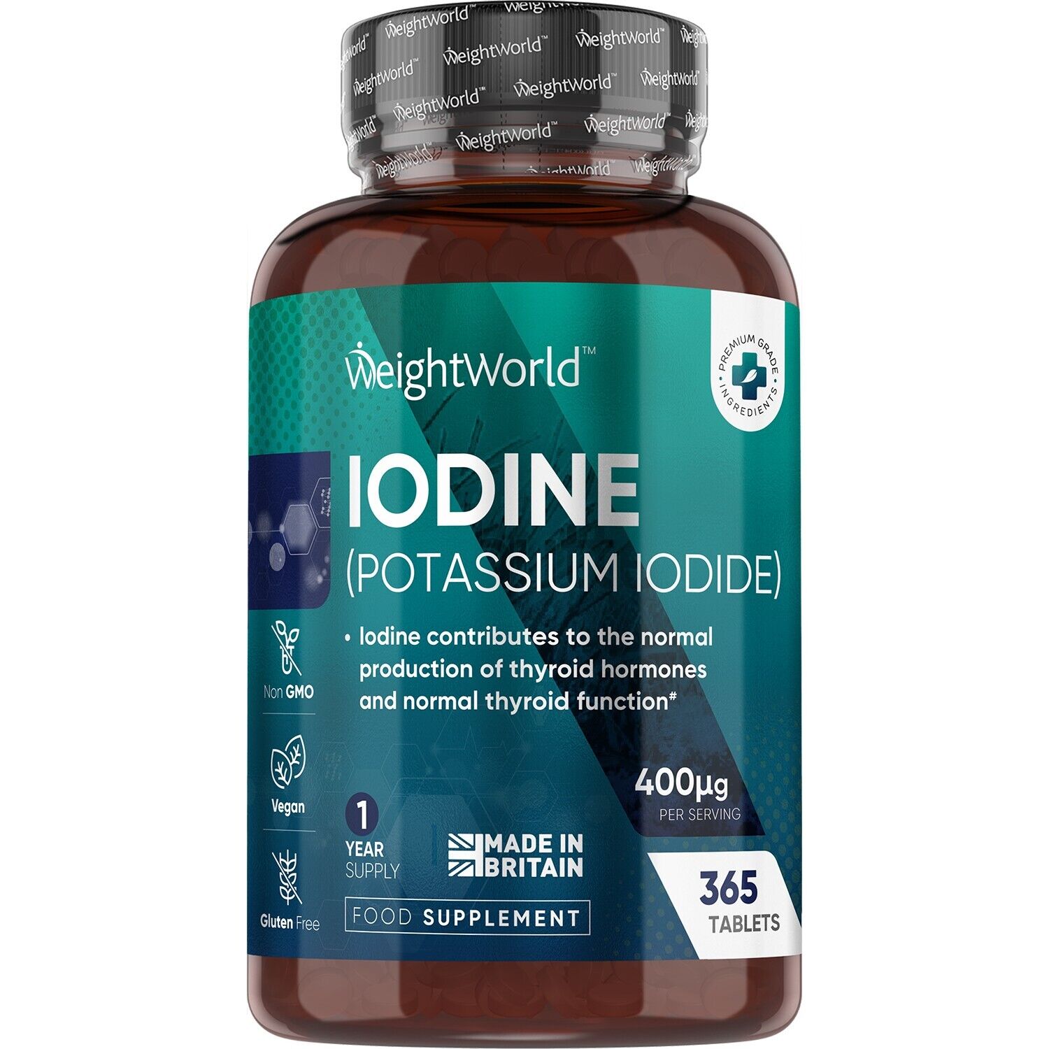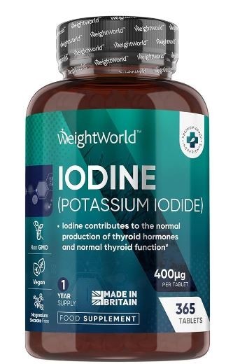 WeightWorld Iodine Tablets 400mcg - 365 Vegan 1 Year Supply High Strength Potassium Iodide UK Made