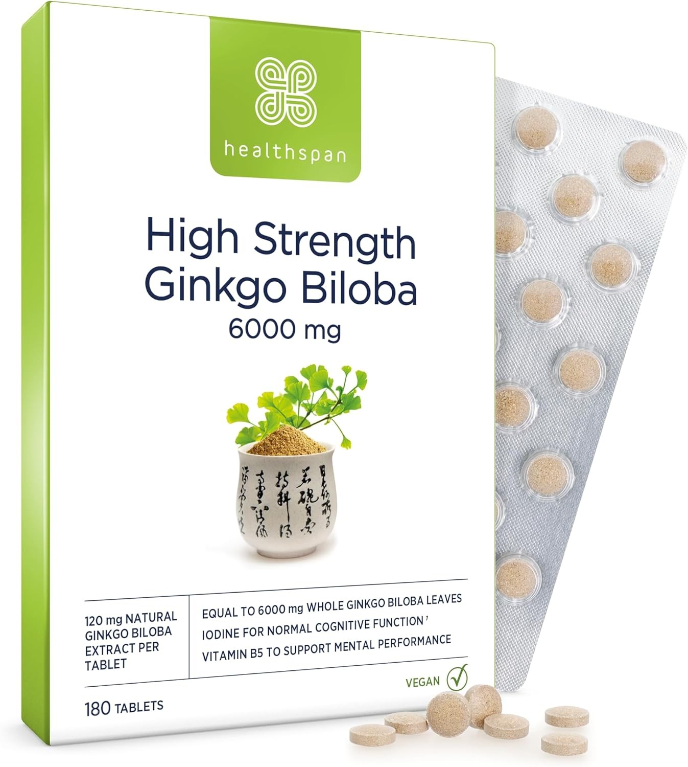 Healthspan Ginkgo Biloba 6,000mg | High Strength | 180 Tablets | Iodine |...