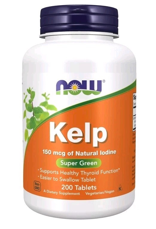 NOW Foods Kelp 150 mcg of Natural Iodine 200 Tablets, Super Green, Thyroid