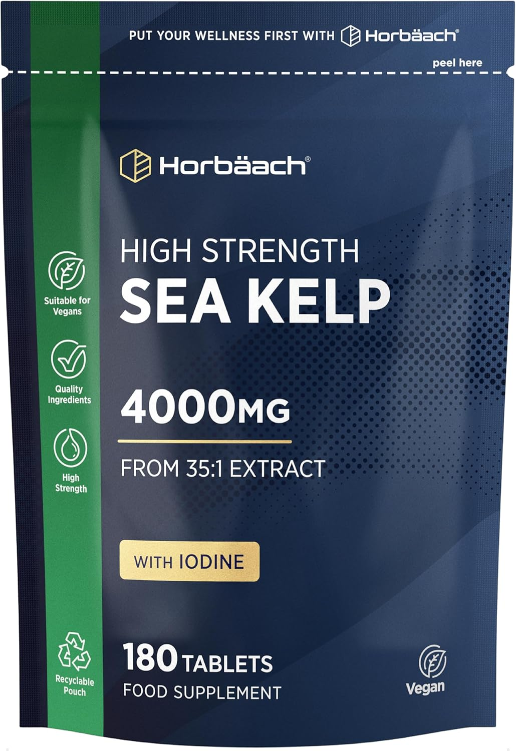 Sea Kelp Tablets 4000Mg with Iodine | High Strength Kelp Extract | 180 Vegan Tab