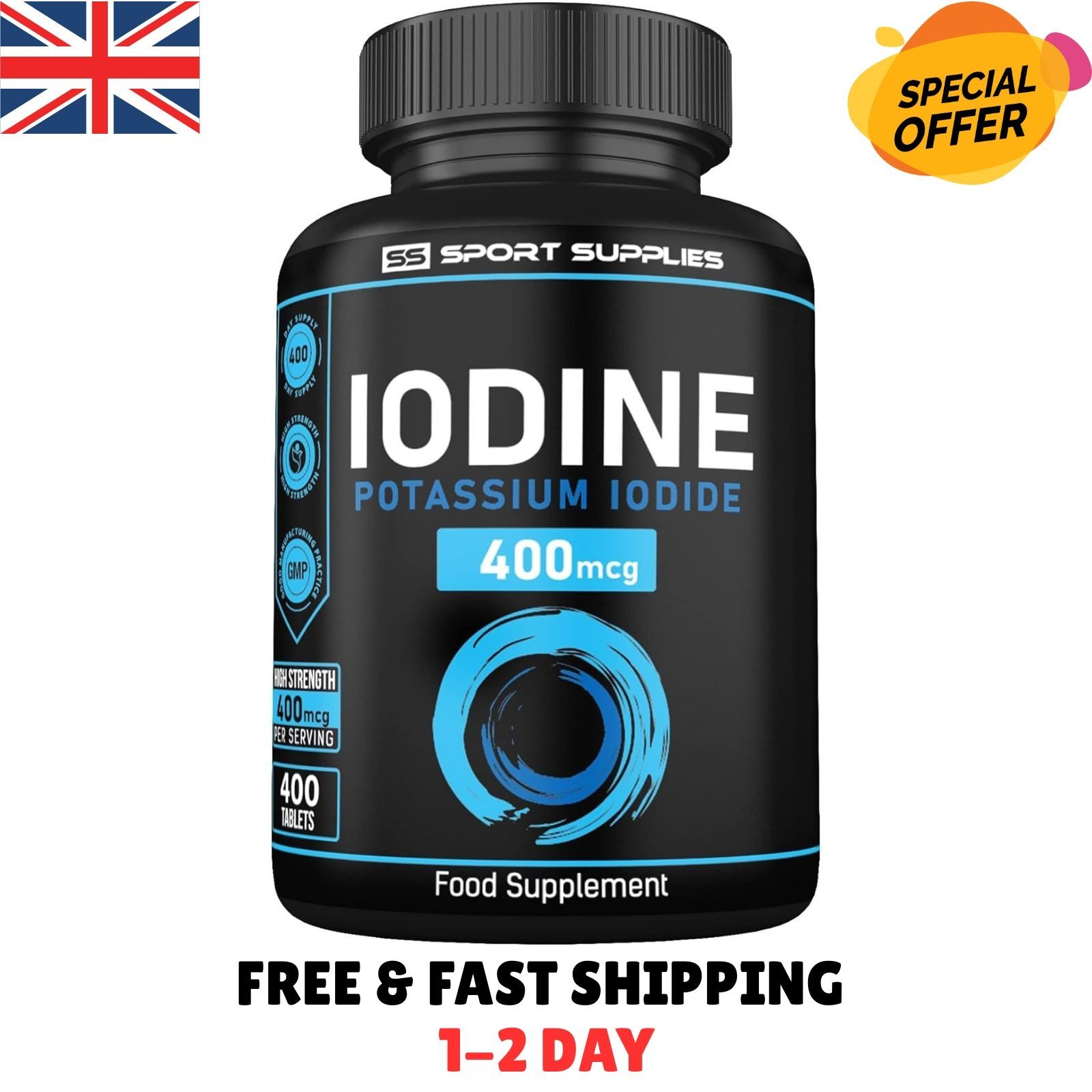 Iodine Tablets 400mcg - 365 Vegan Tablets - 1 Year Supply - High Strength Potassium Iodide - UK Made