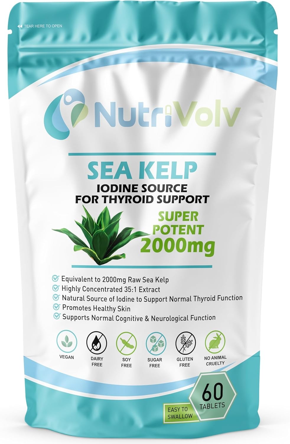 Nutrivolv Sea Kelp 2000Mg Iodine Supplement - 60 Tablets - Source of Iodine Thyr
