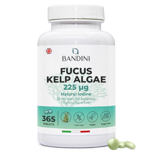 Bandini® Fucus Kelp Algae (Seaweed Natural Iodine 225mcg) – 365 Tablets (1-Year Supply) – High Strength, Vegan – Brown Algae Titrated to 0.1% Iodine – Stimulates Energy Metabolism – Nail & Hair Health