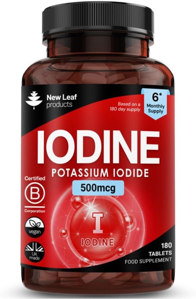 New Leaf Product Iodine Tablets 500mcg Supplement 6 Months Supply Vegan Thyroid Support