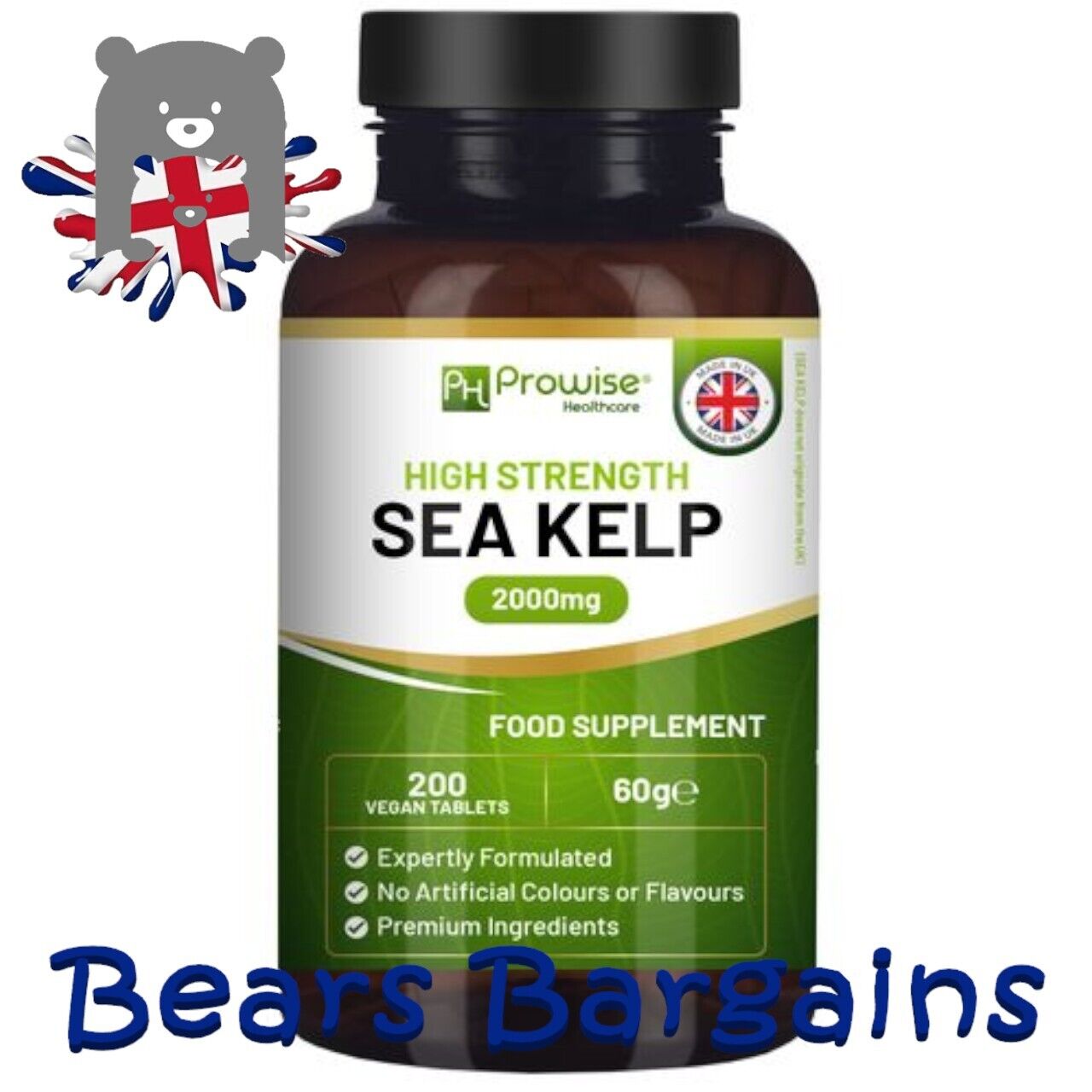 PROWISE Sea Kelp 2000mg - 200 Vegan Tablets Natural Source of Iodine UK Made