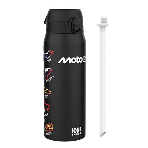 Ion8 MotoGP Racing Mix Sports Thermal Water Bottle with Removable Straw, 750ml/24oz, Leak Proof Insulated Drinking Bottle, Easy to Open, Secure Lock, Dishwasher Safe, Flip Cover, Metal Bottle