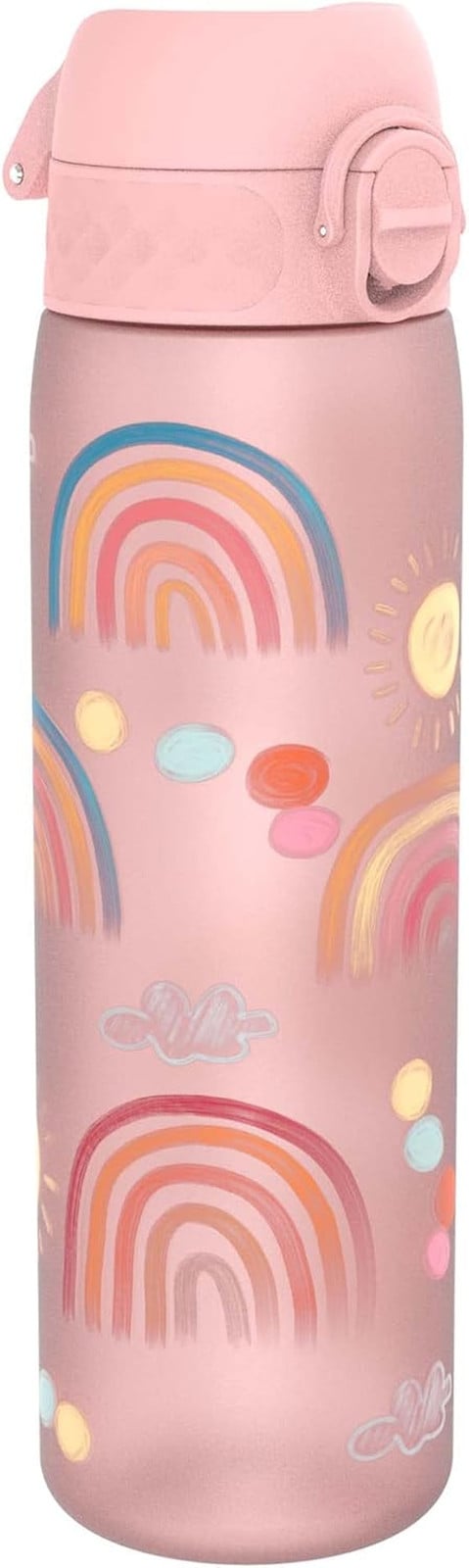 Ion8 Water Bottle, 500 ml/18 oz, Leak Proof, Easy to Open, Secure Lock, Dishwasher Safe, BPA Free, Hygienic Flip Cover, Carry Handle, Fits Cup Holders, Easy Clean, Carbon Neutral, Pink