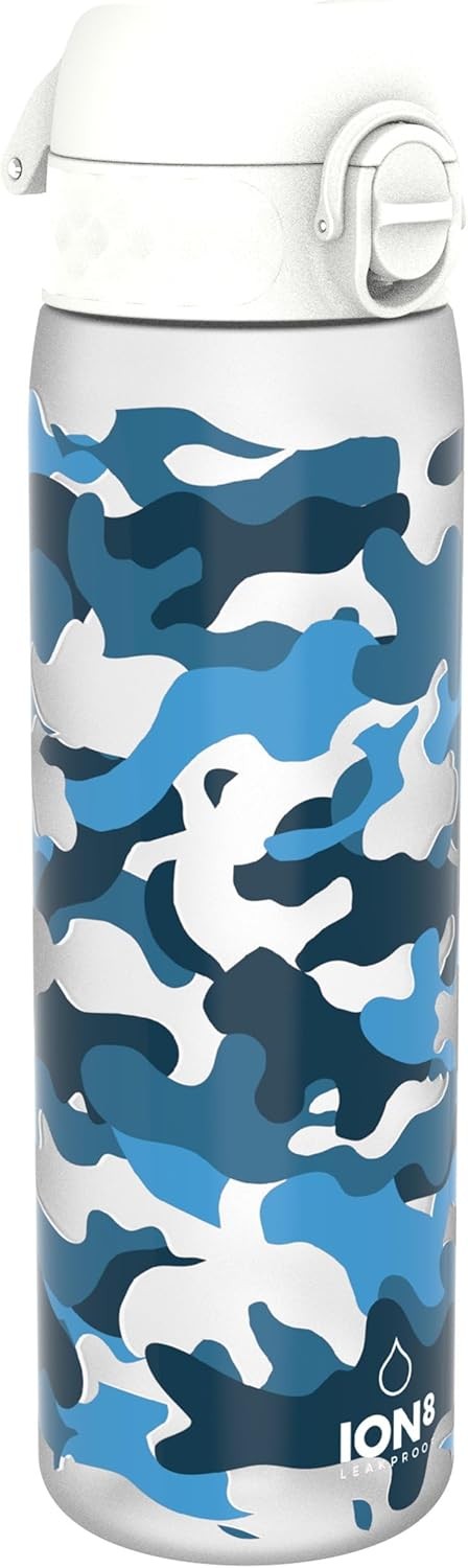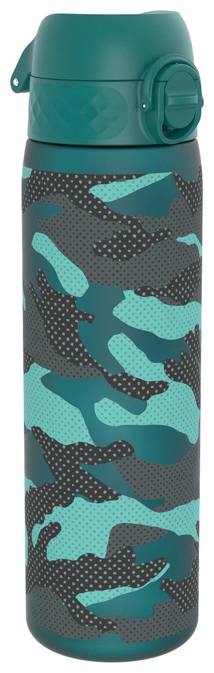 ION8 Water Bottle, 500ml/18oz, Slim Leak Proof & BPA-Free Drinking Bottle, Secure Lock Prevents Spills, Dishwasher Safe, Carry Handle, Ideal for Adults & Kids - Travel, Gym & School, Camouflage Design