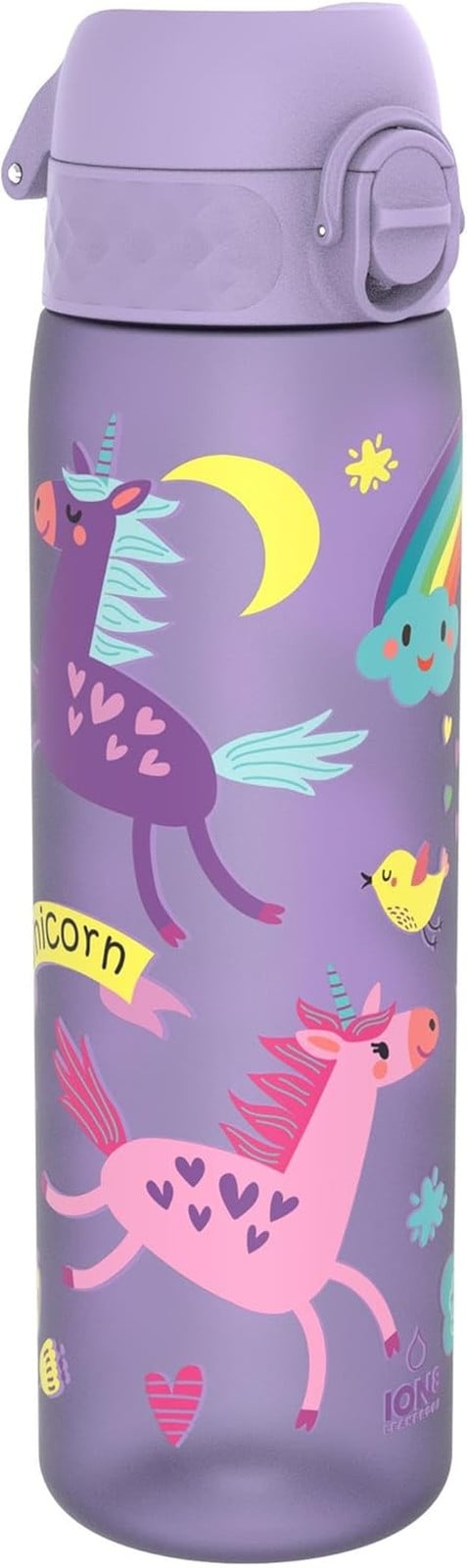 Ion8 Kids Water Bottles, BPA Free, Leakproof, Dishwasher Safe, Easy Open, Secure Lock, Small Boys & Girls Water Bottle,Kids Drinks Bottle for Spill-free Drinking, Pink, Unicorns, 350ml/12oz